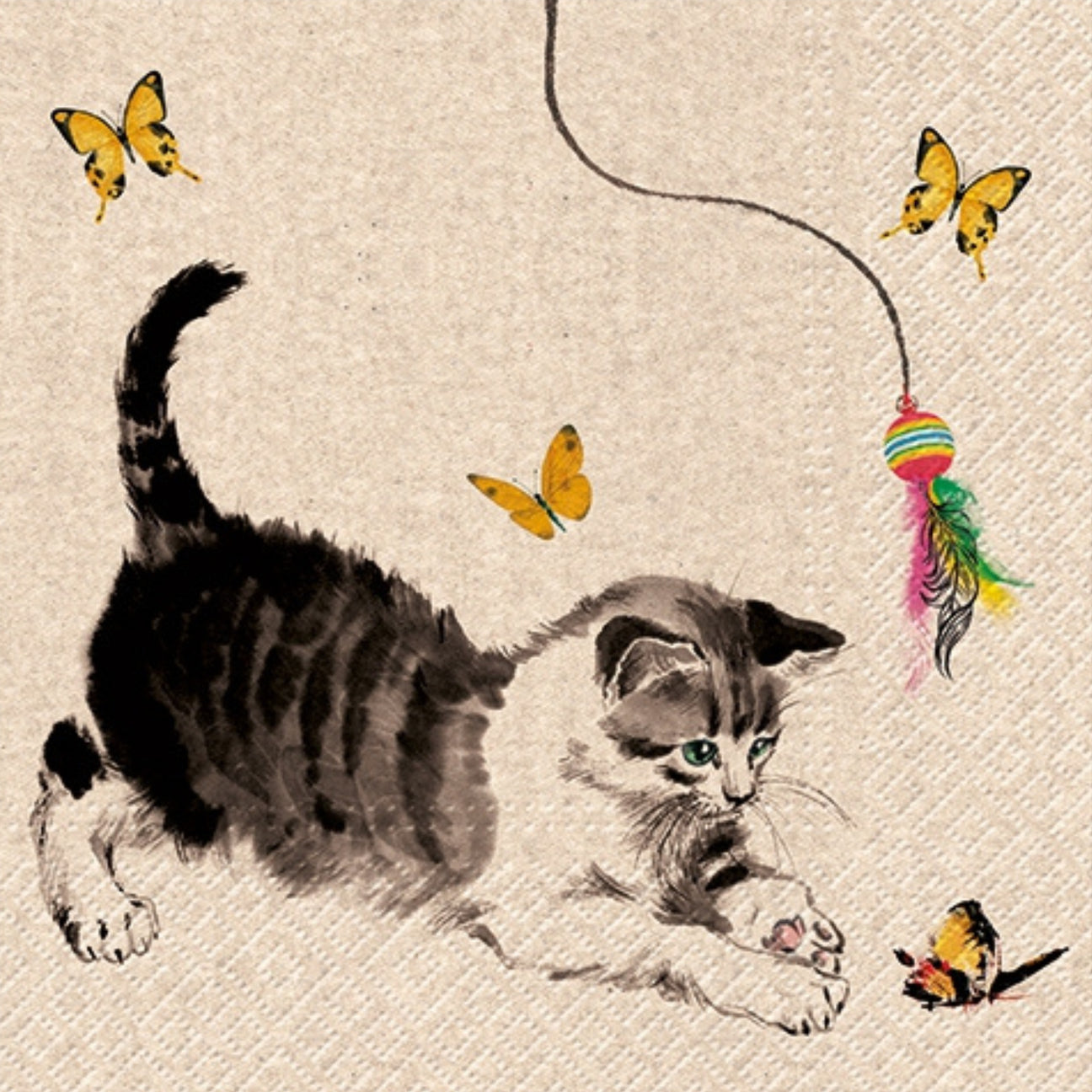 Cat Playing Napkins Decoupage Art Craft Paper Luncheon Napkin #1101