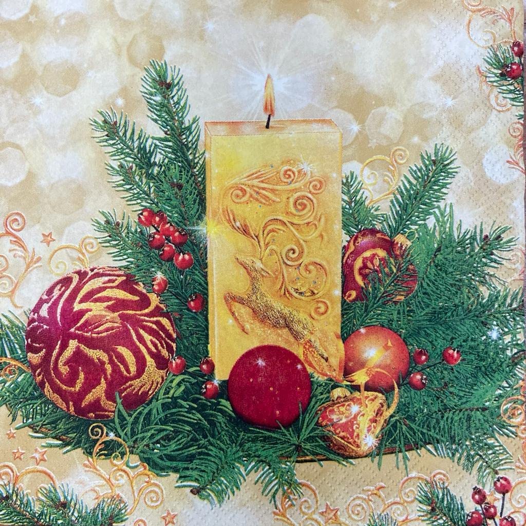 Christmas Napkins Candle Decorative Xmas Paper Decoupage Napkin #2104